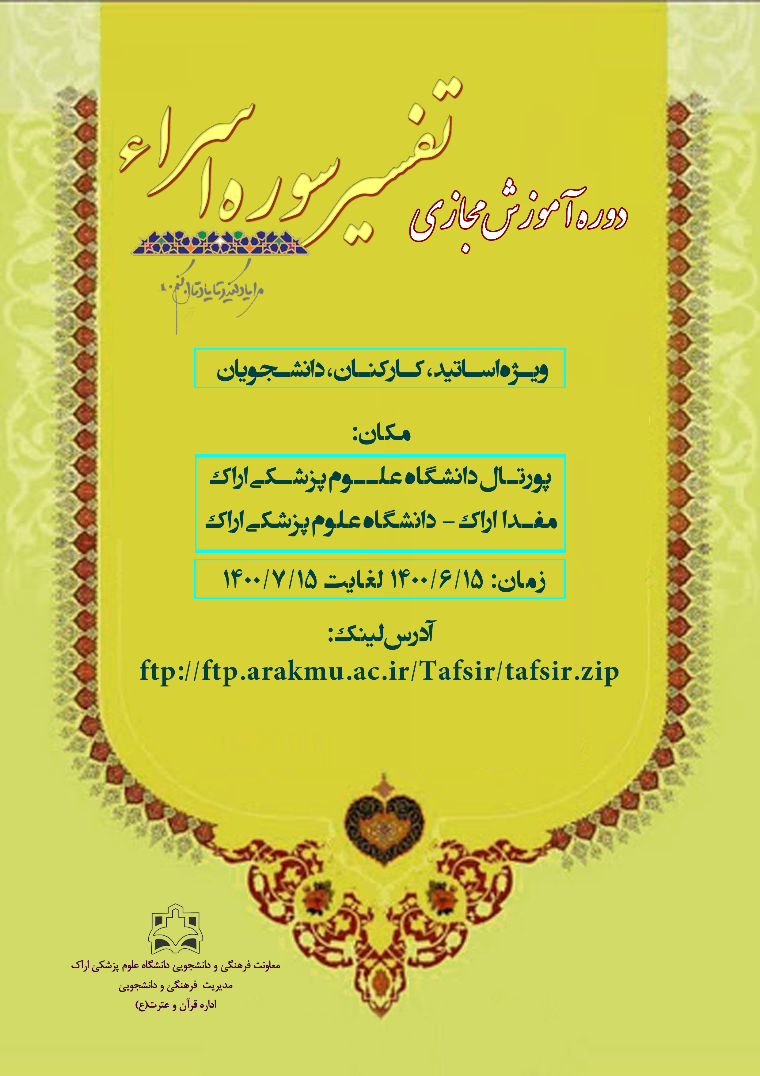دوره آموزش مجازی تفسیر سوره اسراء ۱۳ شهریور ۱۴۰۰ | ۱۱:۳۲ کد : ۱۹۸۲۹ اطلاعیه ارسال به دیگران نام شما ایمیل شما ایمیل دریافتکننده ارسال انصراف تعداد بازدید:۲۶۴۹۸