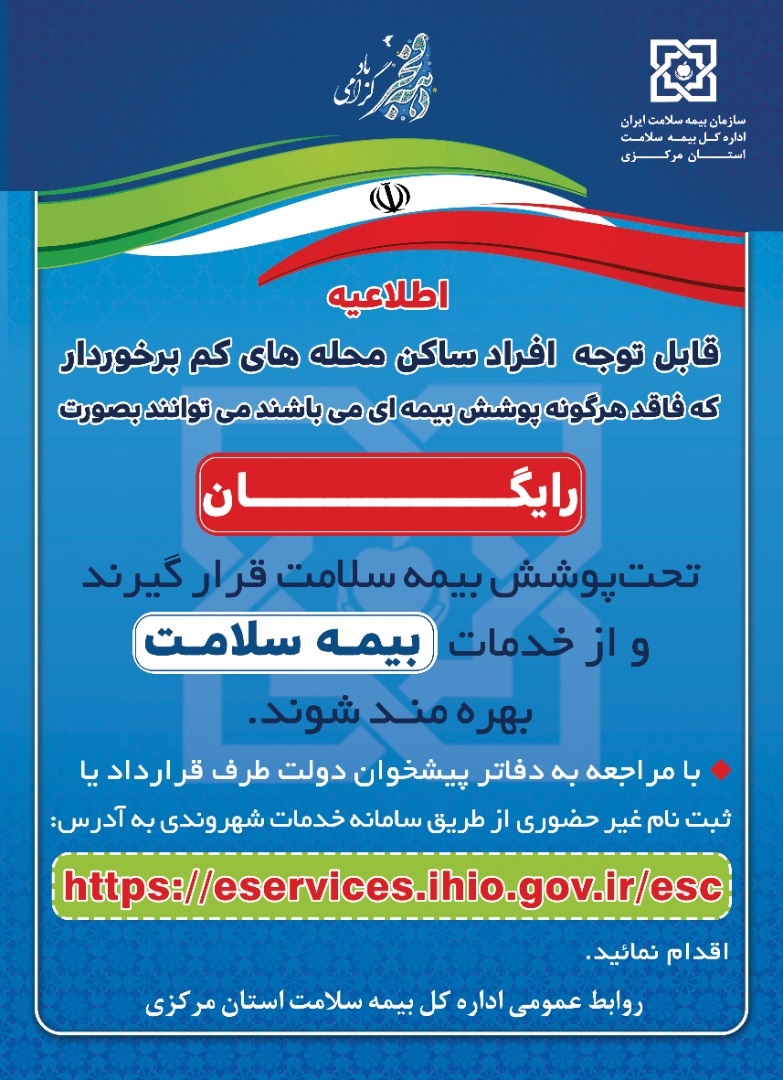 طرح بیمه نمودن افراد فاقد پوشش بیمه ای در محله های کم برخوردار ۰۳ اسفند ۱۴۰۰ | ۱۲:۴۸ کد : ۲۴۱۷۷ اطلاعیه ارسال به دیگران نام شما ایمیل شما ایمیل دریافتکننده ارسال انصراف تعداد بازدید:۲۵۰۷۳