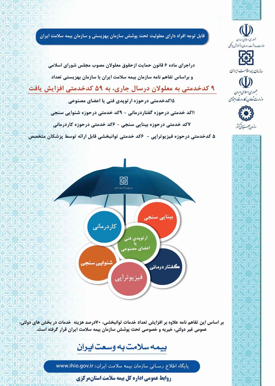 قابل توجه افراد دارای معلولیت تحت پوشش سازمان بهزیستی و سازمان بیمه سلامت ایران ۱۲ آذر ۱۴۰۱ | ۰۹:۵۵ کد : ۳۰۹۷۱ اطلاعیه ارسال به دیگران نام شما ایمیل شما ایمیل دریافتکننده ارسال انصراف تعداد بازدید:۲۰۹۵۰