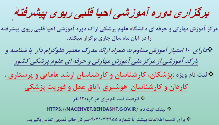اطلاعیه برگزاری دوره آموزشی احیا قلبی ریوی پیشرفته ۰۸ مهر ۱۴۰۲ | ۱۰:۲۰ کد : ۳۷۹۸۷ اطلاعیه ارسال به دیگران نام شما ایمیل شما ایمیل دریافتکننده ارسال انصراف تعداد بازدید:۱۶۲۳۰