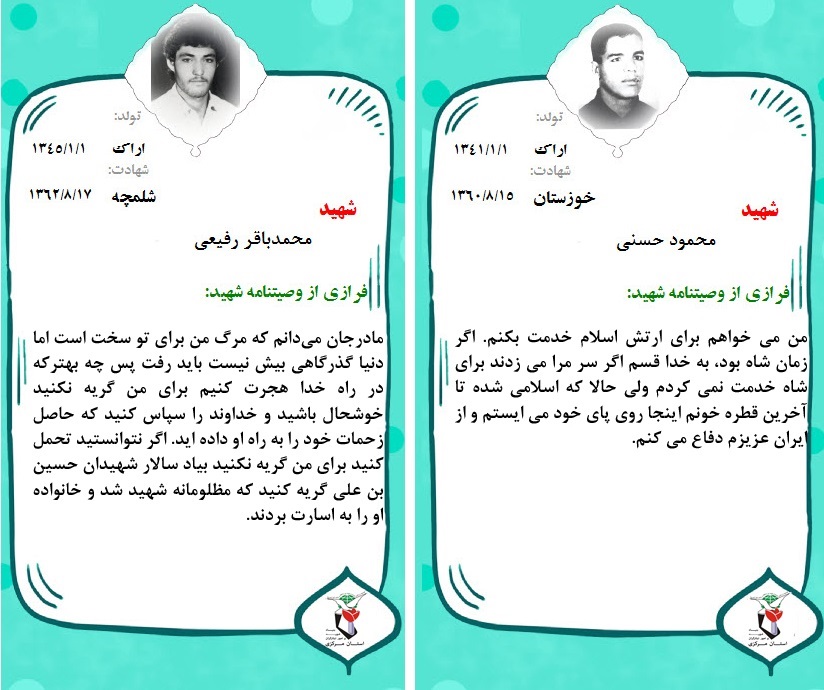 فرازی از وصیت نامه دو تن از شهیدان بزرگوار :