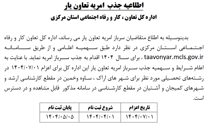 اطلاعیه جذب امریه تعاون یار ۱۱ تیر ۱۴۰۴ | ۱۲:۰۴ کد : ۵۲۷۴۸ اطلاعیه ارسال به دیگران نام شما ایمیل شما ایمیل دریافتکننده ارسال انصراف تعداد بازدید:۷۵۳ اطلاعیه جذب امریه تعاون یار