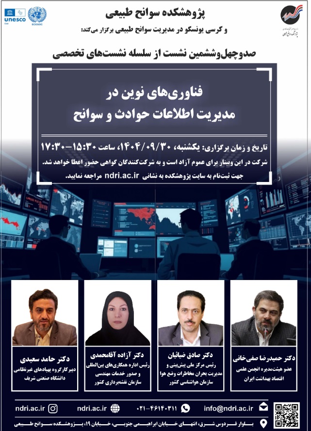 نشست فن آوری نوین در مدیریت اطلاعات حوادث وسوانح ۳۰ آذر ۱۴۰۴ | ۱۲:۰۴ کد : ۵۷۱۴۹ اطلاعیه ارسال به دیگران نام شما ایمیل شما ایمیل دریافتکننده ارسال انصراف تعداد بازدید:۱۹۲۴ دعوتنامه نشست فن آوری نوین در مدیریت اطلاعات حوادث وسوانح