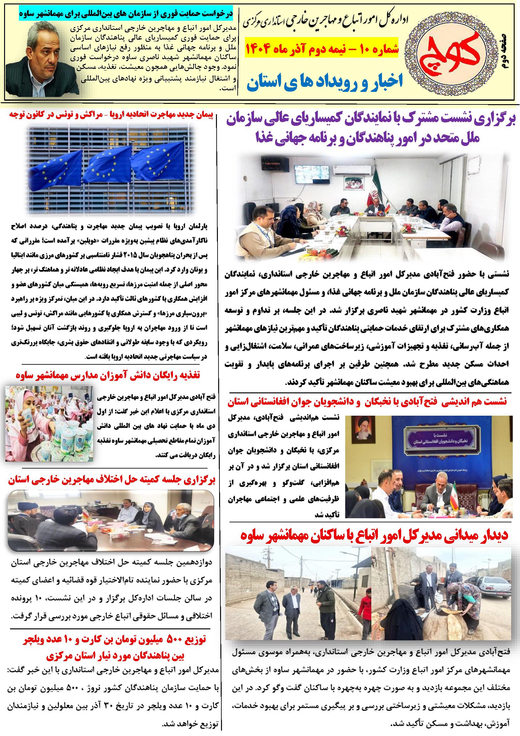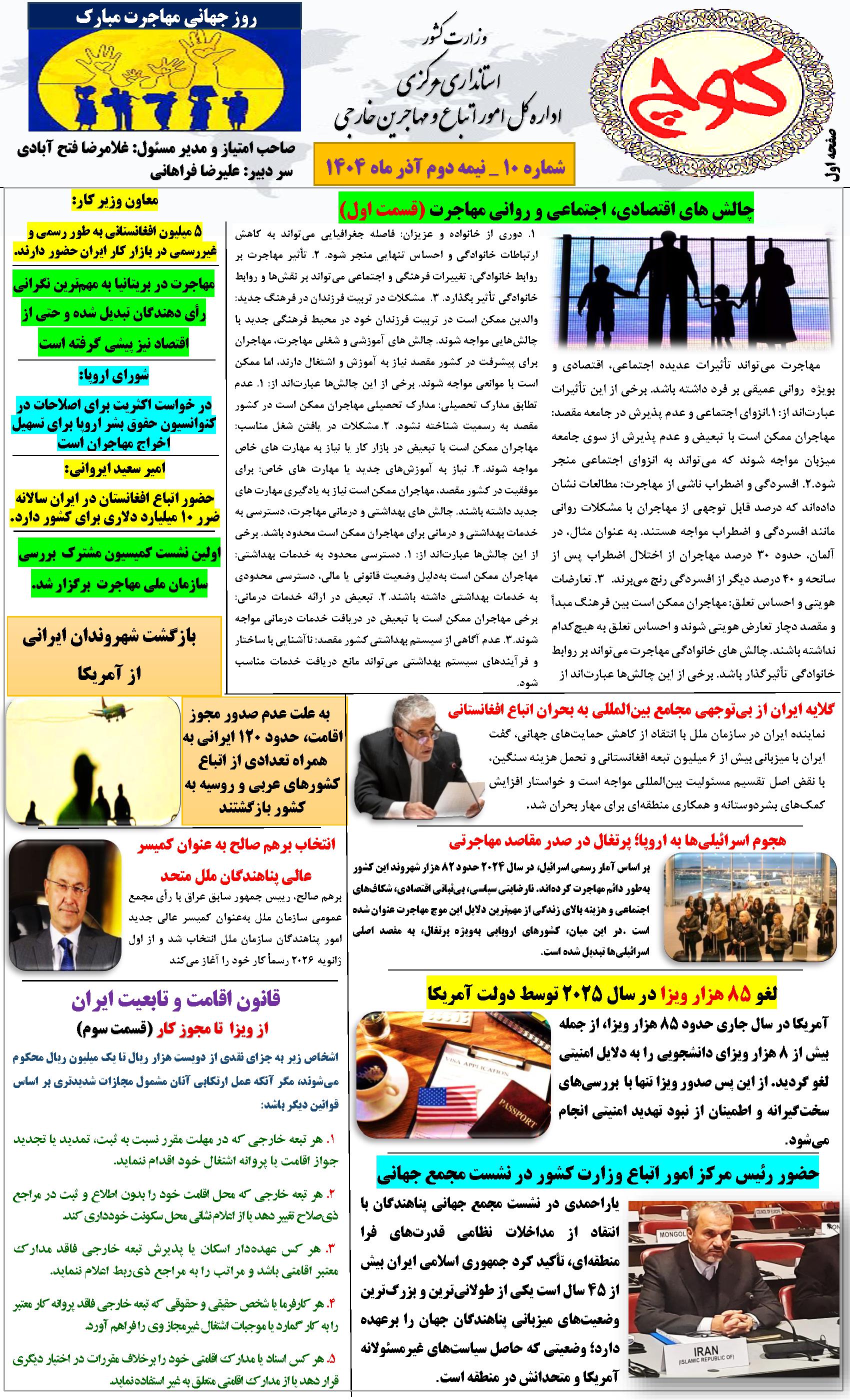 دهمین شماره نشریه کوچ ۰۳ دی ۱۴۰۴ | ۰۹:۲۱ کد : ۵۷۵۲۰ اطلاعیه ارسال به دیگران نام شما ایمیل شما ایمیل دریافتکننده ارسال انصراف تعداد بازدید:۵۴۸ دهممین شماره نشریه کوچ، توسط دفتر امور اتباع و مهاجرین خارجی استان مرکزی منتشر گردید.