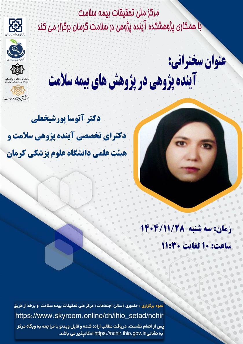 نشست علمی - تخصصی آینده پژوهی در پژوهش های بیمه سلامت ۲۶ بهمن ۱۴۰۴ | ۱۲:۱۹ کد : ۵۸۰۱۲ اطلاعیه ارسال به دیگران نام شما ایمیل شما ایمیل دریافتکننده ارسال انصراف تعداد بازدید:۸۰۳ نشست علمی - تخصصی آینده پژوهی در پژوهش های بیمه سلامت