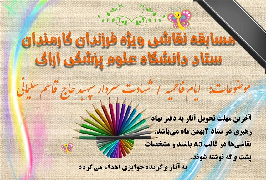 مسابقه نقاشی ویژه فرزندان کارمندان ستاد دانشگاه علوم پزشکی اراک ۲۵ دی ۱۳۹۸ | ۱۴:۰۳ کد : ۷۳۲۷ اطلاعیه ارسال به دیگران نام شما ایمیل شما ایمیل دریافتکننده ارسال انصراف تعداد بازدید:۳۷۰۴۴